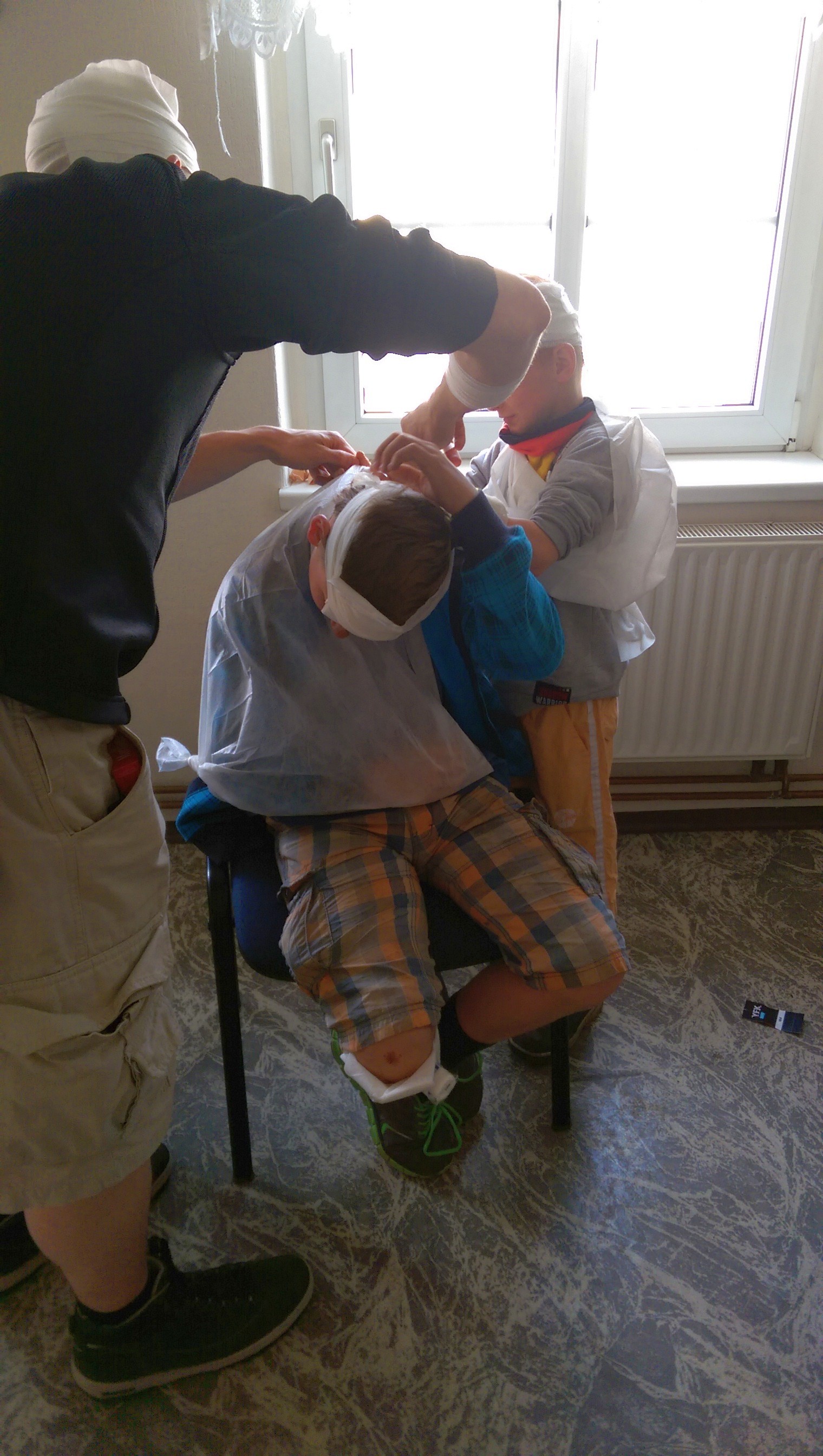 Wir legen Druckverbände an.