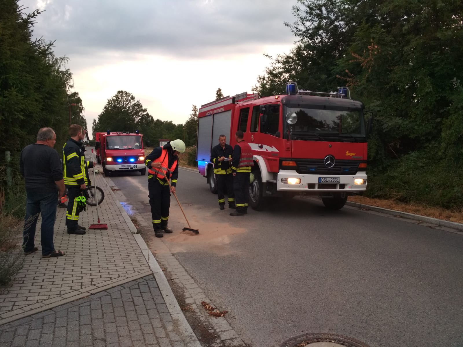 Ölspur durch defekten PKW in Sedlitz auf West- bis Raunoer Str.