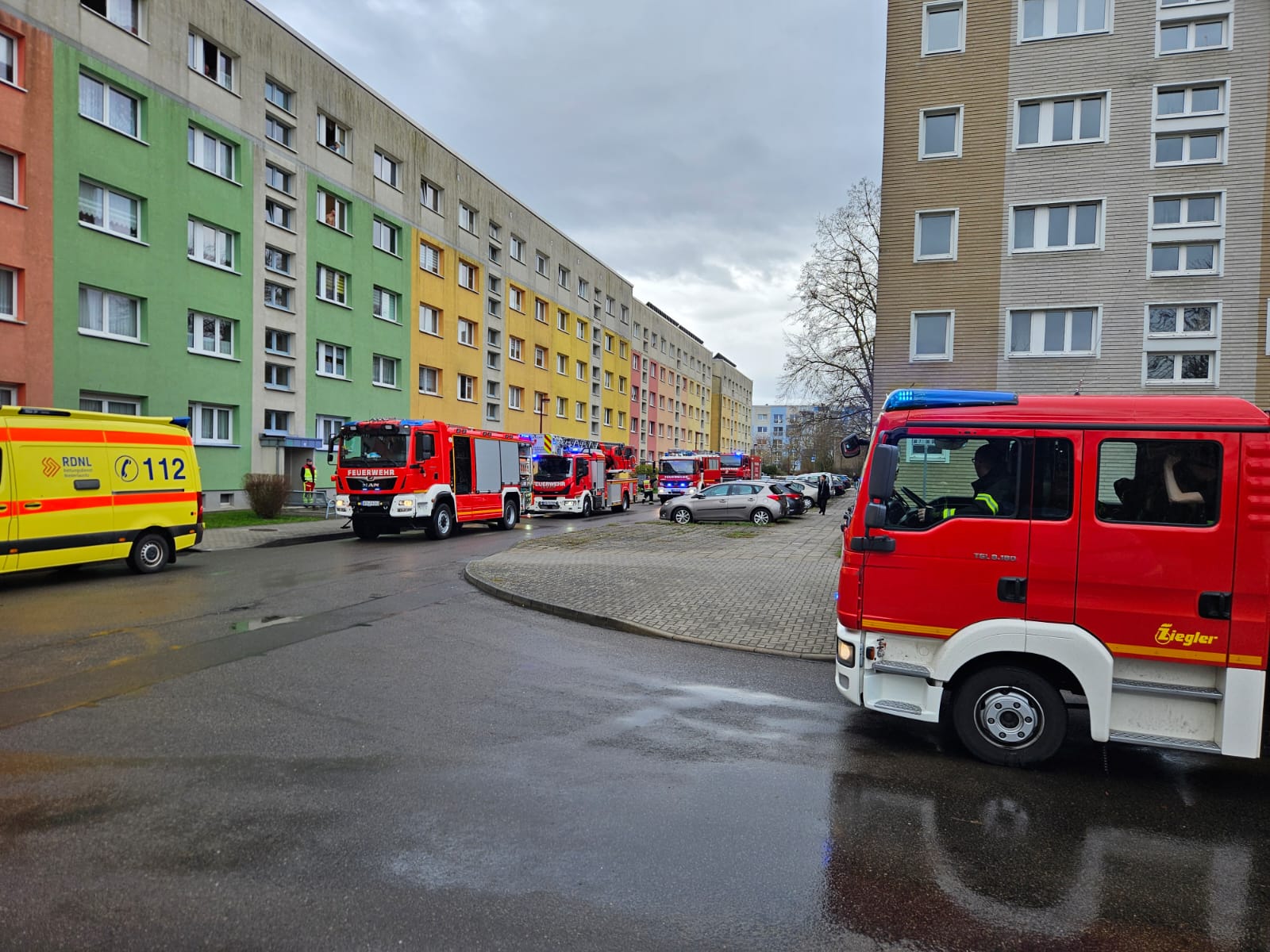 Brand Gebäude klein, Rauchmelder ausgelöst durch angebranntes Essen.